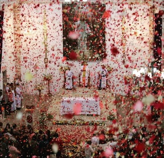 La preparación para esta celebración es muy detallada; se necesitan más de dos toneladas de pétalos de rosa para lanzarlos dentro y fuera del templo. Un grupo de unas 35 personas sube a los tejados de la iglesia para esparcir los pétalos, creando una lluvia de flores que cubre el suelo y genera un ambiente mágico, acompañado por el sonido de las campanas.