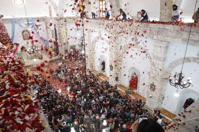 Este evento especial tiene lugar en el "Domingo de Resurrección", una fecha celebrada por los católicos. La tradición mezcla la espiritualidad con el legado minero de la región, ya que la ceremonia se basa en una leyenda que sigue viva entre los habitantes. Se cuenta que la tradición comenzó cuando el hijo de un minero estuvo gravemente enfermo. Desesperado, el padre prometió llenar la iglesia con pétalos de rosa si su hijo se recuperaba. El milagro sucedió, y desde entonces, esta promesa se cumple cada año, convirtiéndose en una festividad importante en Mineral del Chico.